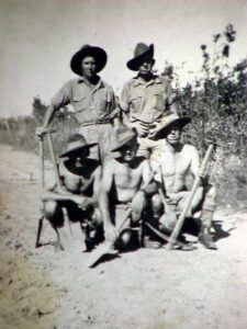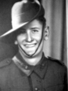Raymond “Jimmy” Coombes was born in Forbes on the upper Hastings as the fourth son of a family of six boys. The first time Jimmy was shot at was when he was just 15 years old. His brother accidentally shot him with a .22 rifle. “The bullet went in my nose there and across my mouth, and the lead is still there in my neck.” While this led to a fear of firearms, it didn’t prevent Jimmy from enlisting on New Year’s Day 1940, when he was just 17. He was almost rejected based on his age and the fact that he put on the paperwork that he was 20. After some persuasion, “I got my regimental number and took the oath on the Bible, and I was in the army, and I enjoyed every day of my army career”, Jimmy recalled.