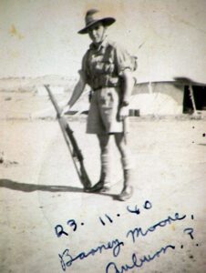 Bernard ‘Barney’ Moore was born in Liverpool, England, in 1919. At the age of six, he moved to Auburn, Australia, with his family. A mere 14 years later, he volunteered in the Second AIF. Despite being a year too young for the required age of 21, he lied on his paperwork and enlisted as a private in the 2/2nd Australian Infantry Battalion, 6th Division.