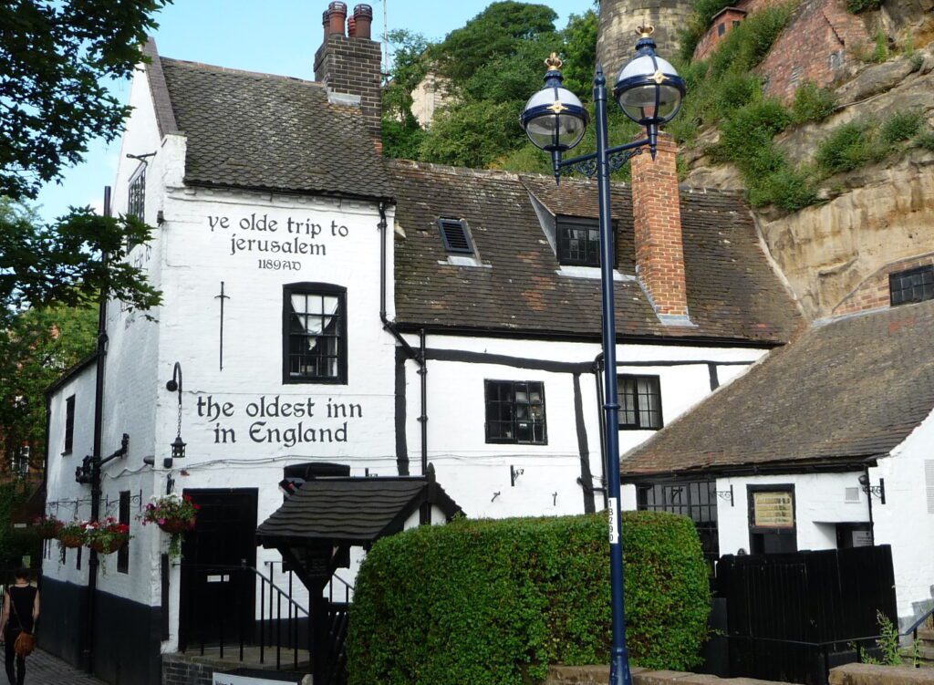 Carved into the sandstone cliffs beneath Nottingham Castle, Ye Olde Trip to Jerusalem claims to be the oldest inn in England, although this is a hotly contested title.