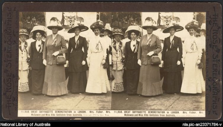 It was possible to be both proud Australians and loyal “women of the Empire”. In June 1911, Australians Alice Henry, Dora Montefiore, Nellie Martel and Murial Matters joined with Goldstein and Margaret Fisher, wife of Australia’s then-prime minister Andrew Fisher, to march in the Great Suffrage Petition in London.
