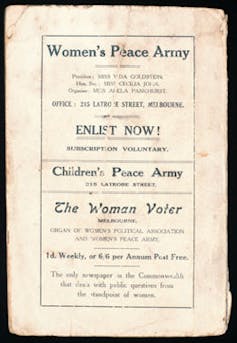 One cultural trend stands out. Australia’s collective memory of the international achievements of its homegrown suffrage movement has faded in inverse proportion to the popularity of the Anzac legend. Militarism has won the public relations campaign for the “birth of a nation” mantle. Most Australian feminists believed as fervently in disarmament as suffrage. It was indeed the latter that should, in theory, have produced the former.
