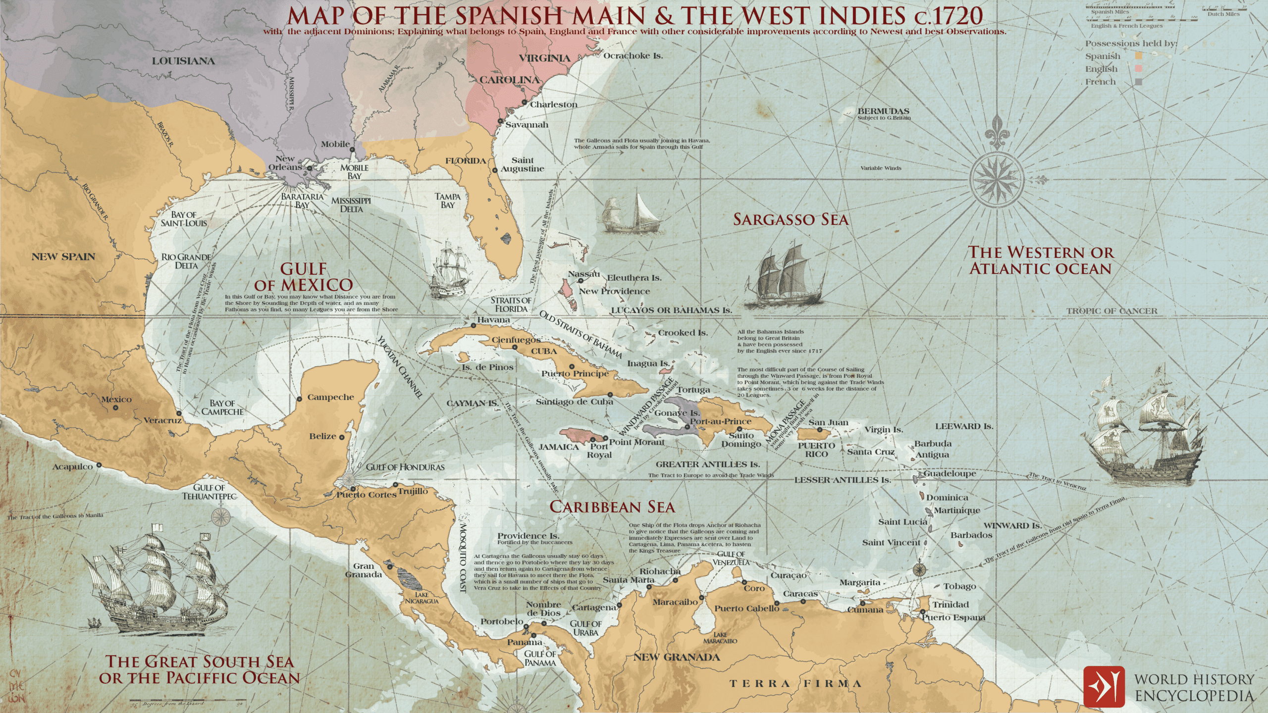 Huge ships filled with canons, gold, porcelain, silk, and other riches from Asia, the Manila Galleons were the key vessels in transporting rare goods from Asia across the Pacific Ocean to Spanish holdings in Mexico. From there, the cargo could easily be sailed across the Atlantic to Spain and Europe.