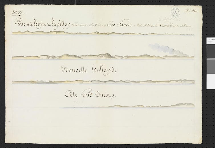Both the Flinders and Baudin expeditions aimed to record geographical data and map coastal profiles: to capture information for posterity by whatever means possible, while “on the hop”. On Baudin’s voyage, this record keeping took the form of – among other things – written notes, measurements, drawings and paintings, portraiture of Indigenous people, and musical notation of the Indigenous ceremonies they had observed in the course of their voyage.