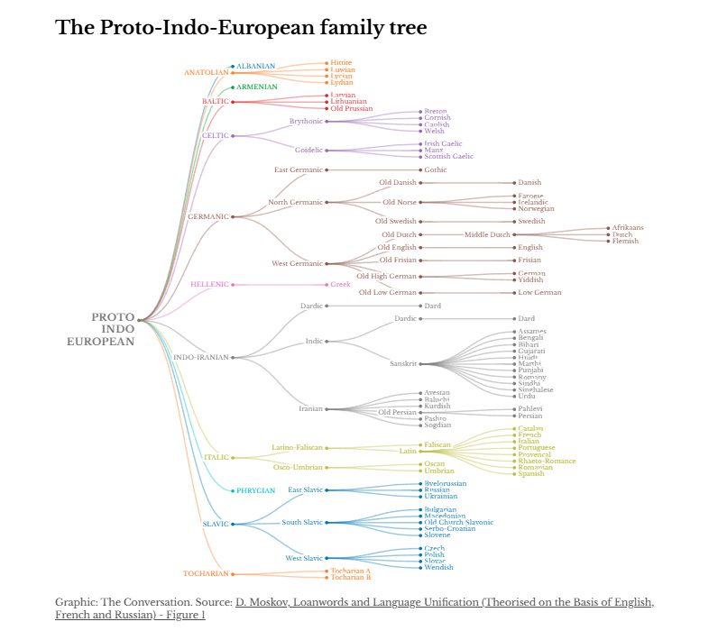 Like a biological genus, the Indo-European languages became understood as forming a family. At their root was the PIE ancestor, while the descendant languages branched out (like species) to form a tree.