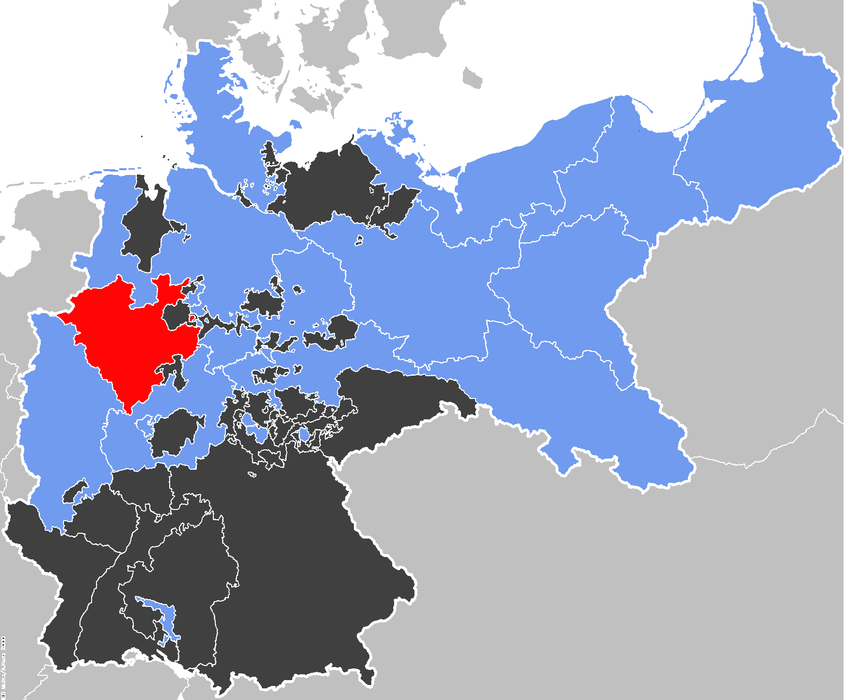 This map of Europe, outlining borders in 1815, demonstrates that still at the beginning of the 19th century, Europe was divided mostly into empires, kingdoms, and confederations. Hardly any of the entities on the map would meet the criteria of the nation-state.