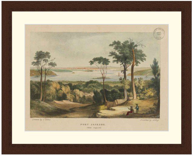 Port Jackson from Vaucluse, c1800. Etching by I. Ellis. Available in 3 sizes: Small 36cm x 29cm Medium 49.4cm x 39cm Large 69.7cm x 54cm Available in 3 Frame Types, Black, Dark Brown Wood and Light Brown Wood. High quality framing with Non-Reflective glass. Printed on Ilford GALERIE Prestige Fine Art paper. 10 to 15 day turnaround for framing, but let us know if you need it by a particular date and we will try our best to make it happen. Other sizes and frames available, email hello@historyguild.org for more. The sale of these prints funds our history education programs, thank you for your support.