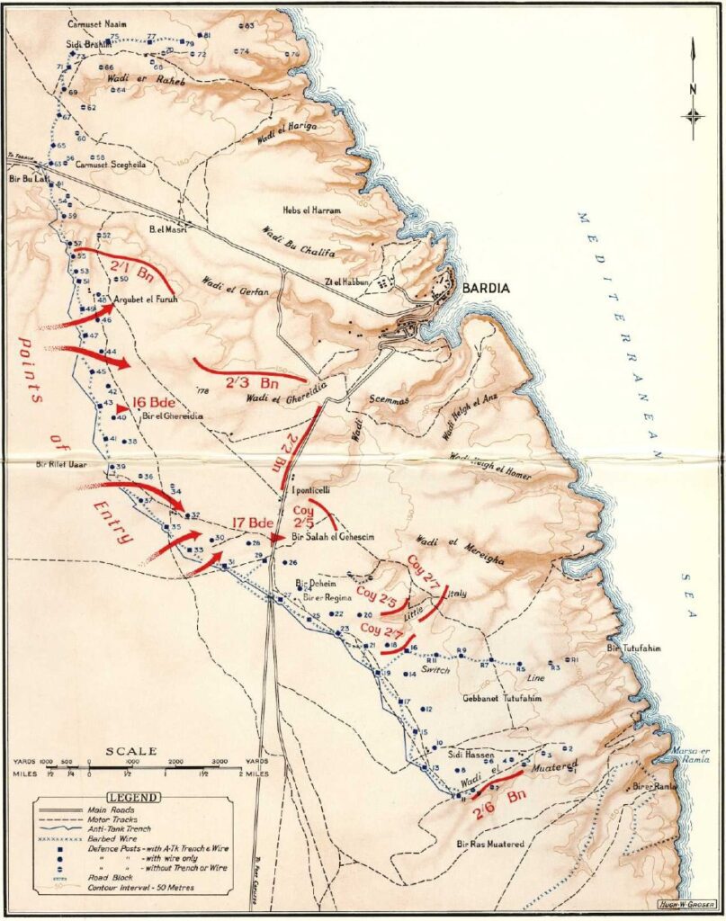 Following the victory at Sidi Barrani, the Australian 6th division, made up of the 16th, 17th and 19th brigades, moved towards Bardia.
