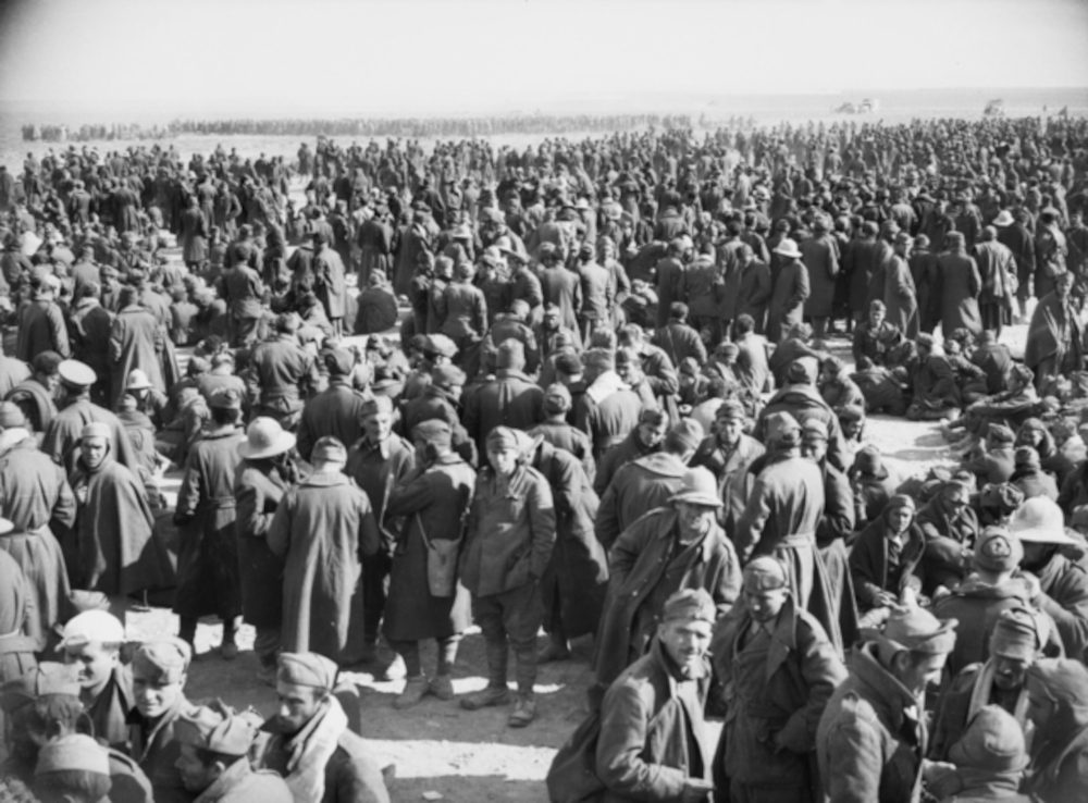 On 9th December, 36,000 men of the 4th Indian Division and the 7th Armoured Division crashed into the fortified Italian camps. O’Connor used the 7th Armoured’s superior Matilda tanks to knock out half a dozen Italian garrisons and seize almost 40,000 prisoners — half of the Italian strength in the area — tanks, trucks, guns, and “mountains of spaghetti and huge cheeses.” A British officer reported capturing “five acres of officers and 200 acres of other ranks.”