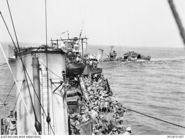 Many ships were lost during the Tobruk Ferry, including HMAS Waterhen. HMAS Waterhen was the first Australian vessel lost during the Second World War, and after it’s loss the old and battered Scrap Iron Flotilla sailed back to Australia. They were refitted, before seeing action against the Japanese.