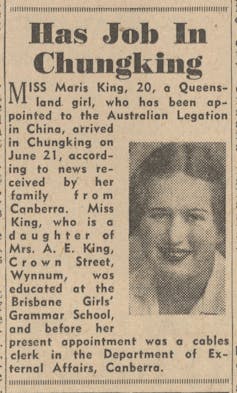 Another notable staffer was Maris King (1922–1997). Only 20 when she left Australia, alone, for Chungking in 1943, King worked as Eggleston’s secretary.