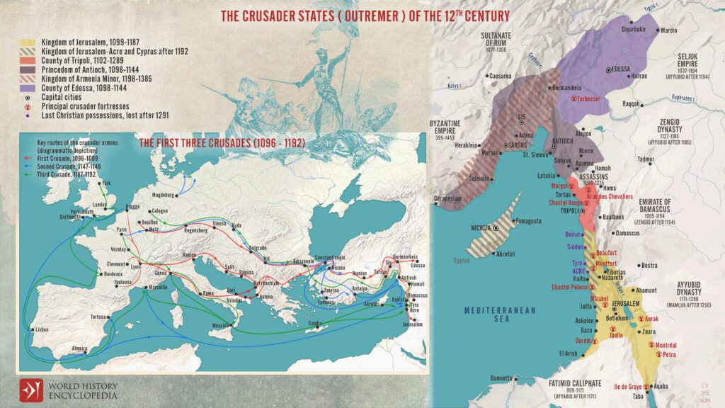 This is where the four major crusader states were born: the County of Edessa, the Principality of Antioch, the County of Tripoli, and the Kingdom of Jerusalem. These states not only served as bastions of Western European influence in the Levant but also became focal points of intricate political dynamics, involving interactions with each other and neighbouring Muslim and Orthodox Christian powers.