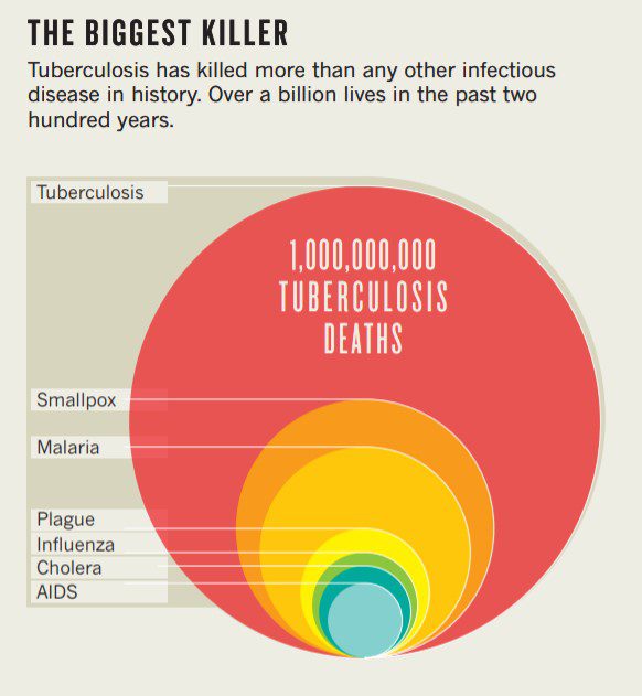 The death tolls of influenza, plague, and smallpox pale in comparison to that of a disease still incredibly prevalent today – tuberculosis. This infectious disease, also known as TB, is said to infect approximately one-third of the global population. Although the bacteria often remain dormant, they can reactivate in small groups of people and spread to others.