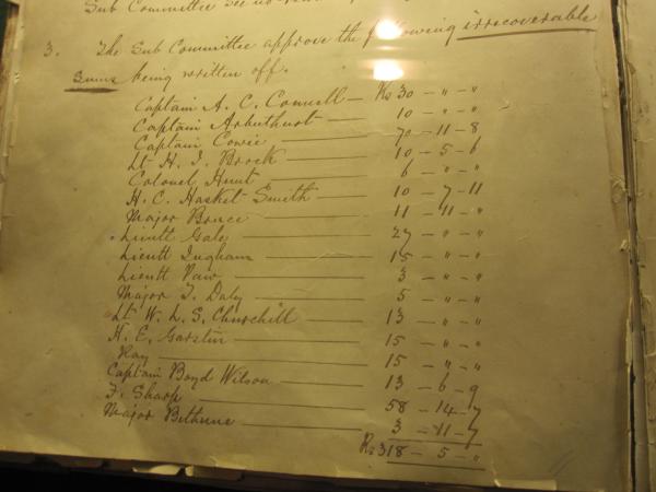 Record of an ‘irrecoverable’ debt left behind at the Bangalore Club in India – one of the smaller unresolved elements from the years of Empire.