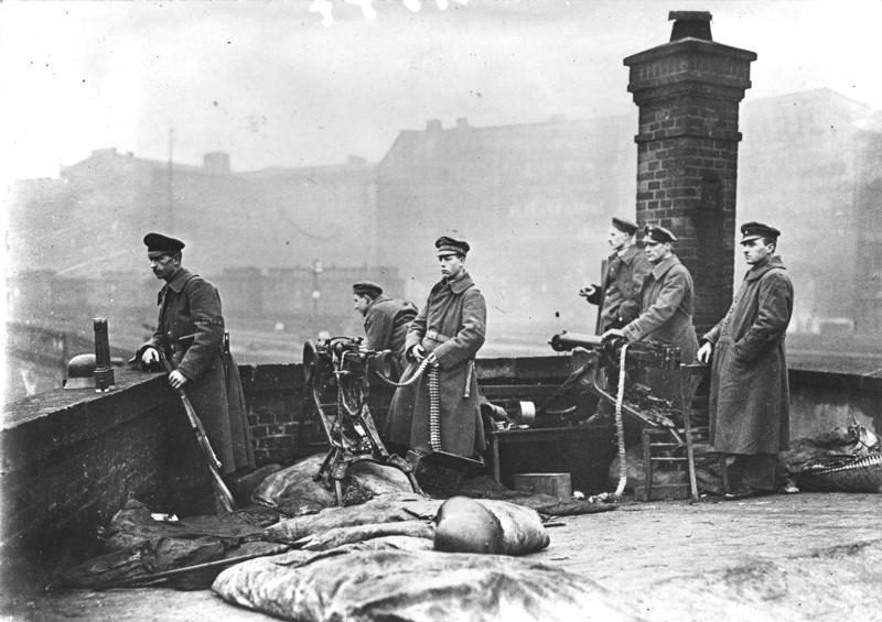 The communist Spartacists rebelled in Berlin, leading to a communist takeover in Bavaria. The Republic put together a band of ex-soldiers, the Freikorp. And tasked them with putting down the communist takeover.