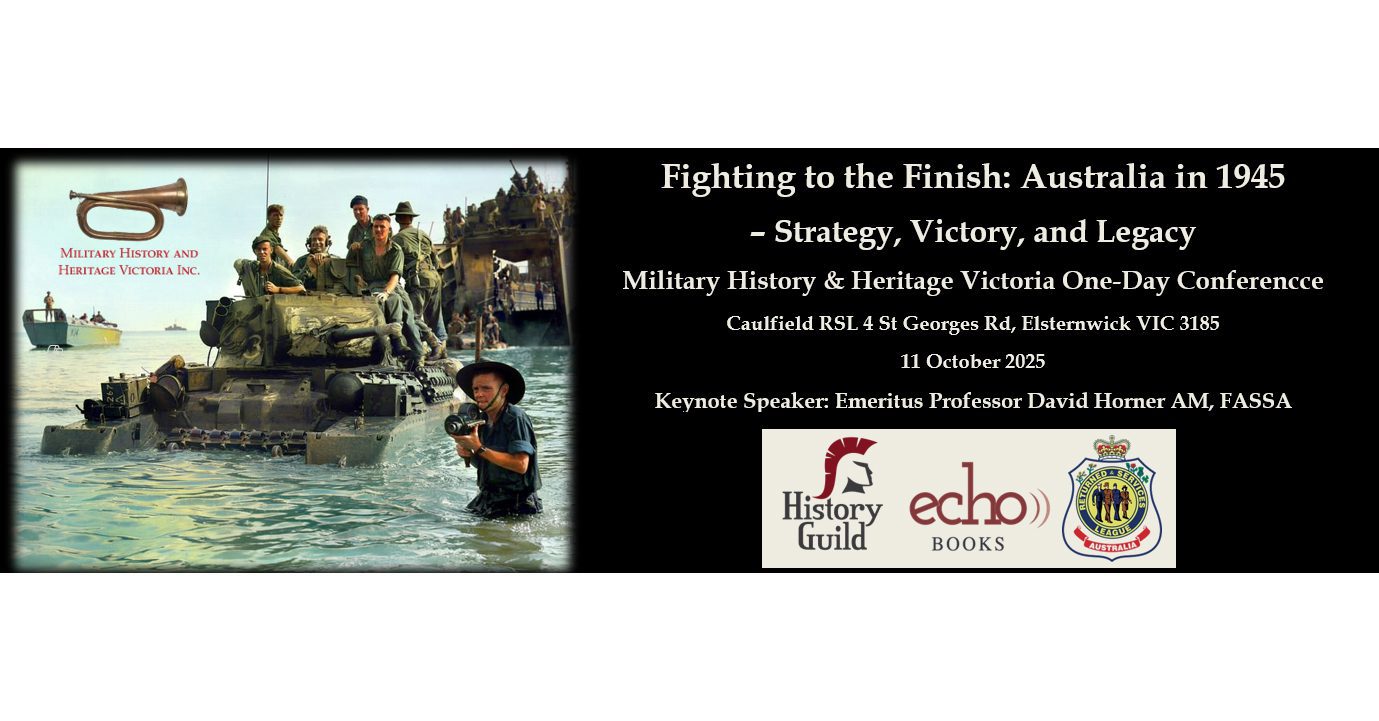 Military History & Heritage Victoria is excited to announce the Call for Papers for our next conference – Fighting to the Finish: Australia in 1945 – Strategy, Victory and Legacy – which will be held on 11th October 2025 in Melbourne. History Guild is proud to support this conference. Keynote will be delivered by Emeritus […]